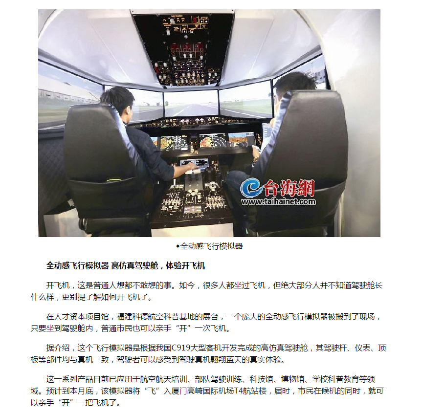 C919國產(chǎn)飛機(jī)全動(dòng)感飛行模擬器駕駛艙亮相后引來各大媒體體驗(yàn)報(bào)道。