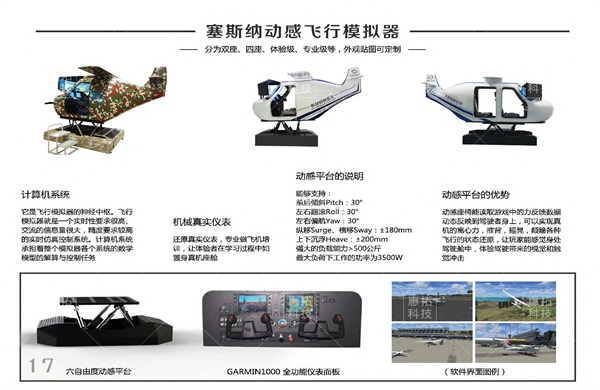 簡(jiǎn)介:六自由度四座塞斯納飛機(jī)模擬器用于飛行預(yù)培訓(xùn),是指在飛行培訓(xùn)之前,在飛行模擬器上對(duì)飛行要做的事,對(duì)飛機(jī)的操作預(yù)先有個(gè)充分的了解,惠拓飛行模擬器,飛行預(yù)培訓(xùn)裝備,專注模擬飛