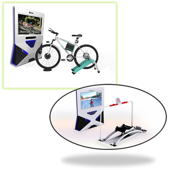 互動健身系統(tǒng)以計算機(jī)仿真學(xué)為基礎(chǔ),利用虛擬現(xiàn)實眼鏡、計算機(jī)實時CG、力反饋和智能傳感器等模擬一種基于現(xiàn)實而又超越現(xiàn)實的運(yùn)動體驗,體驗者在游戲過程中獲得舒適、真實的運(yùn)動感受。結(jié)合游戲,使運(yùn)動不再枯燥,減少疲勞度,增加有氧運(yùn)動時間,在不知不覺中健身。目前公司已推出動感滑雪模擬器、動感單車模擬器和互動跑步機(jī)三款互動健身系列產(chǎn)品。
